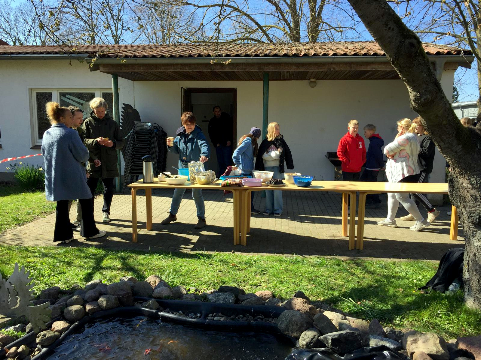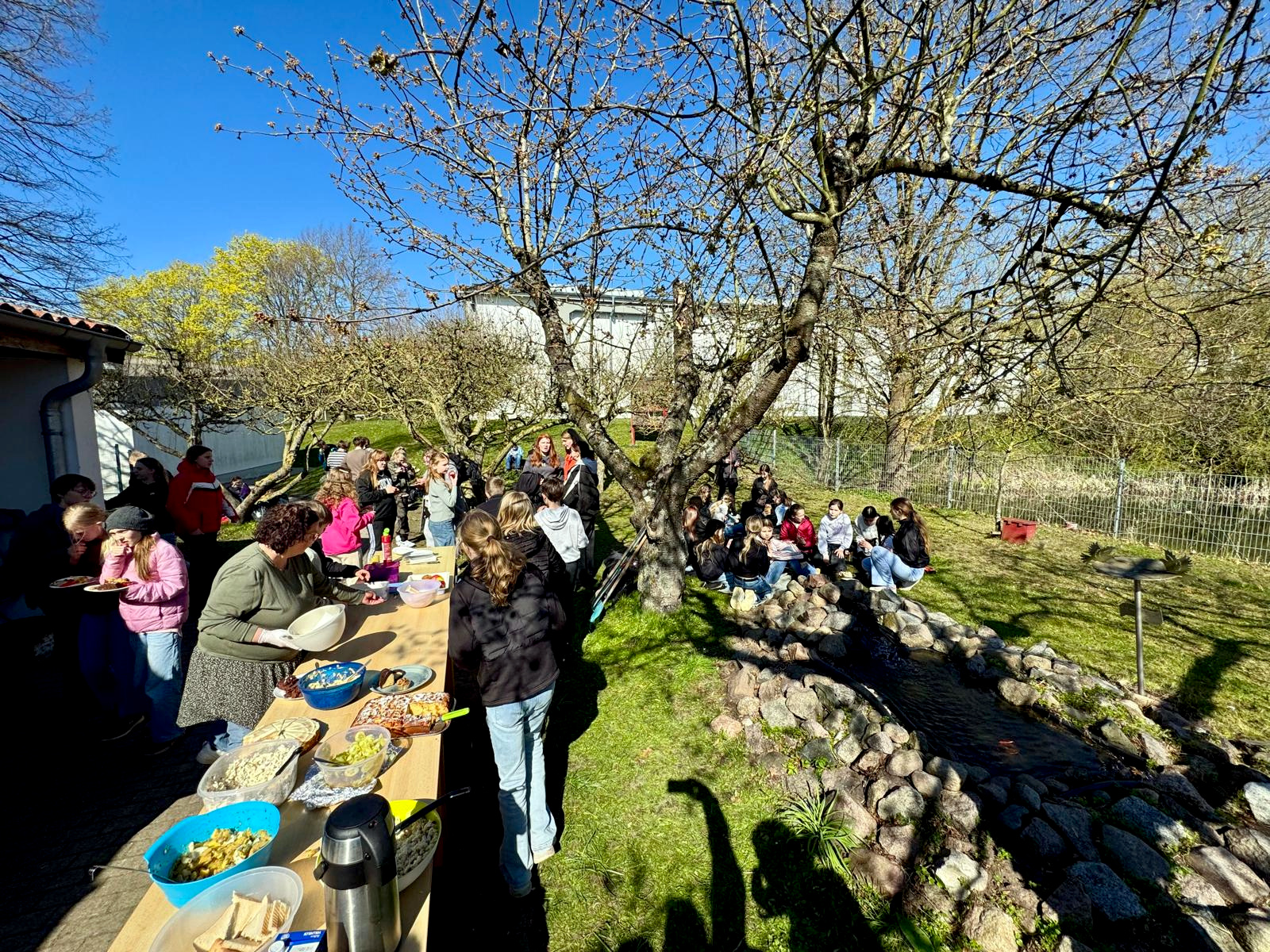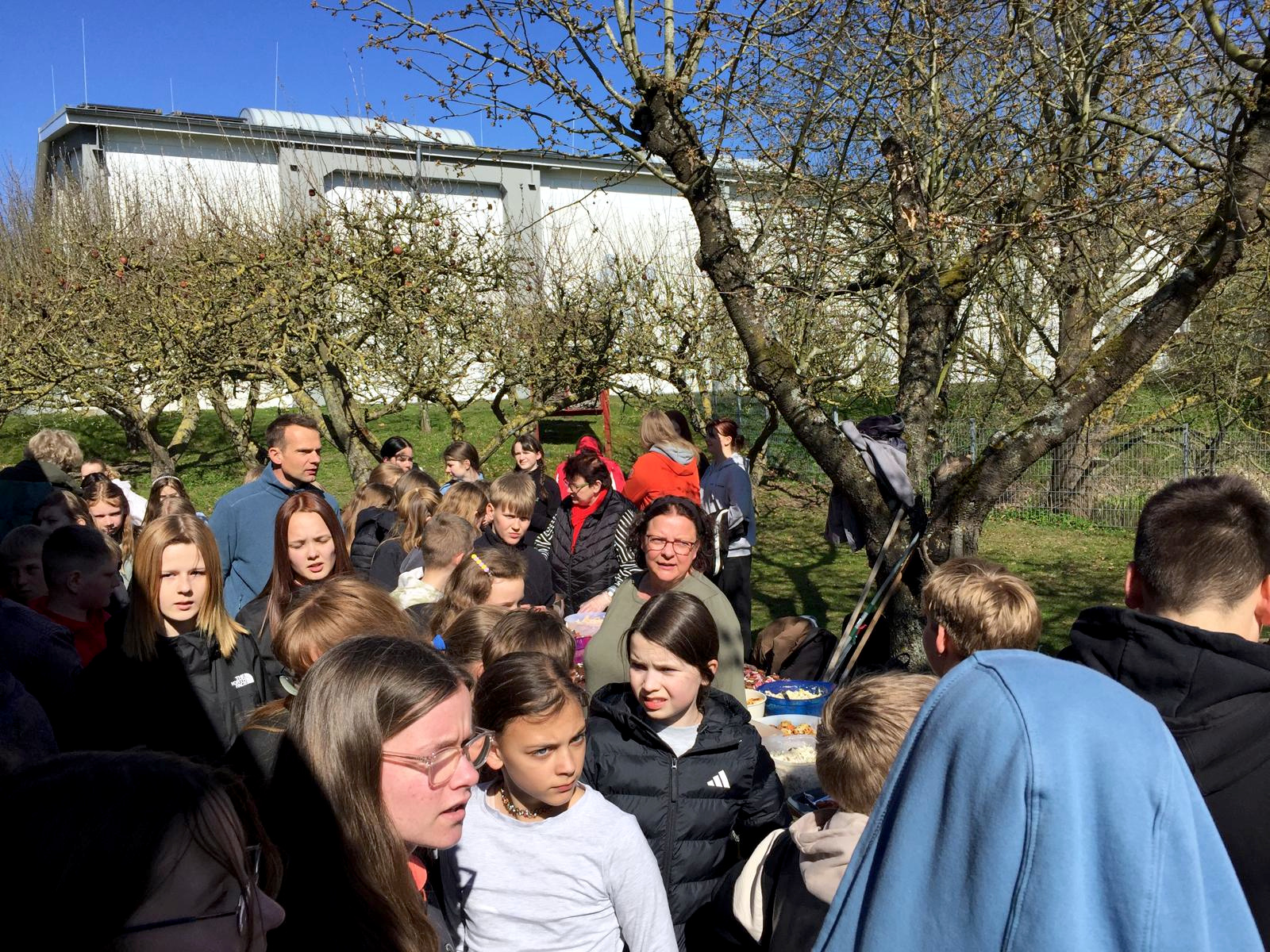 - für die Gespräche beim Imbiss am Schülercafé unter blauem Himmel zwischen den Obstbäumen sitzend oder stehend.