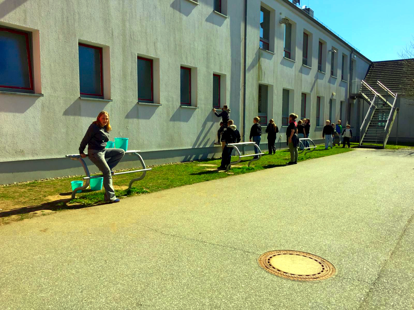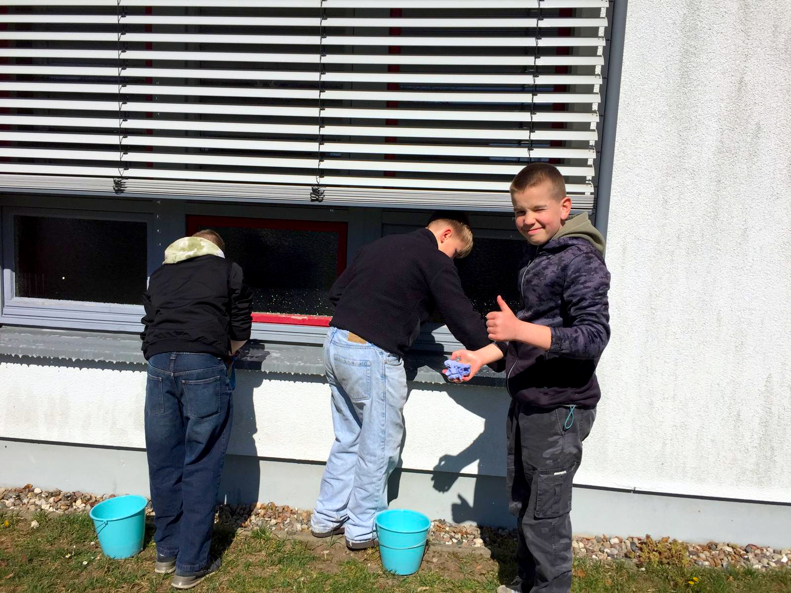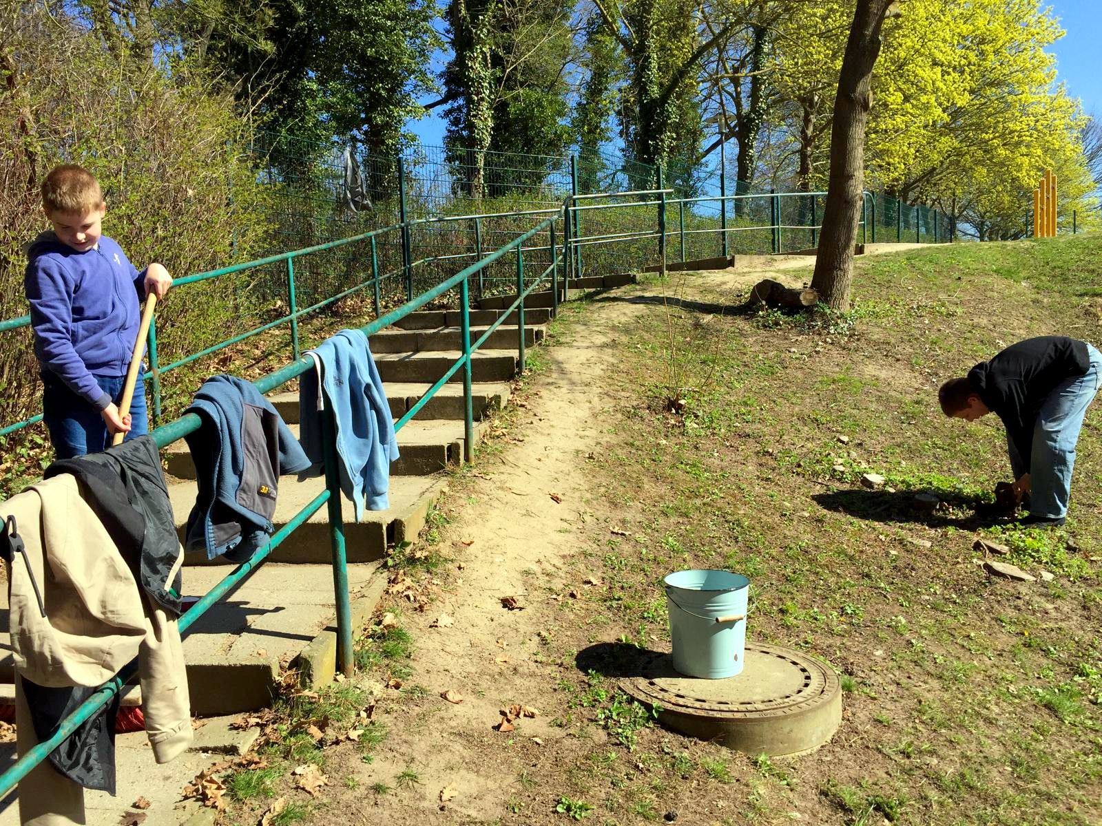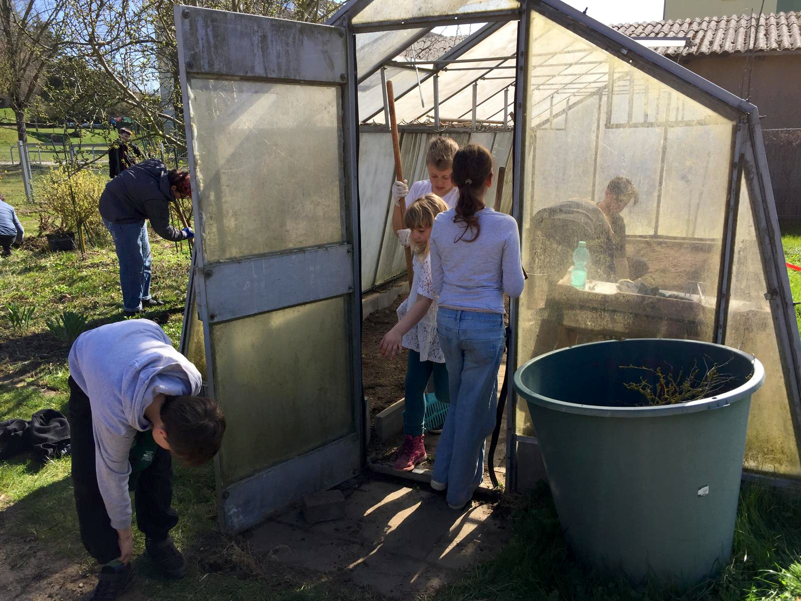 - allen Teilnehmern für eineinhalb Stunden graben, harken, fegen, putzen, Müll sammeln, schrauben, …